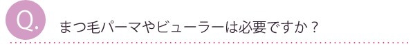 通常行うまつげパーマも必要なく、当店では傷めることなく、十分にカールが上がる高度な技術がございます。また、エクステにも5種類のカールをご用意しております。また、エクステの装着後は、挟むタイプのビューラーのご使用はエクステが折れたり外れるなどの原因になりますのでご注意ください。ホットビューラーのご使用は、高温を避け、まつげの根元から立ち上げるようにお使いください。